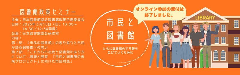 - 2026-02-13募集図書館政策セミナー「市民と図書館~ともに図書館のすそ野を広げていくために~」(2026/3/15)を開催します