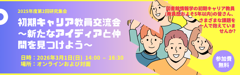 - 2026-01-29募集図書館情報学教育部会「初期キャリア教員交流会」(3/1)を開催します